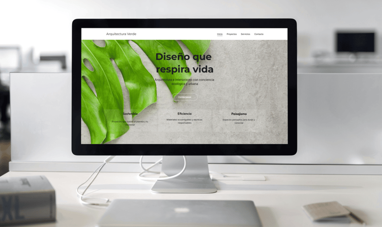 Web de marca para 'Arquitectura Verde', enfocada en la sostenibilidad y el diseño. Combina una imagen cuidada con una navegación rápida para convertir visitantes en clientes potenciales.